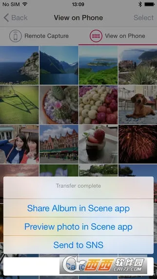 4. 影像查看与管理佳,可在手机上查看相机内图像并复制,复制的图像能收藏、共享或发送到 SNS,还能自动保存到 Scene 相册。