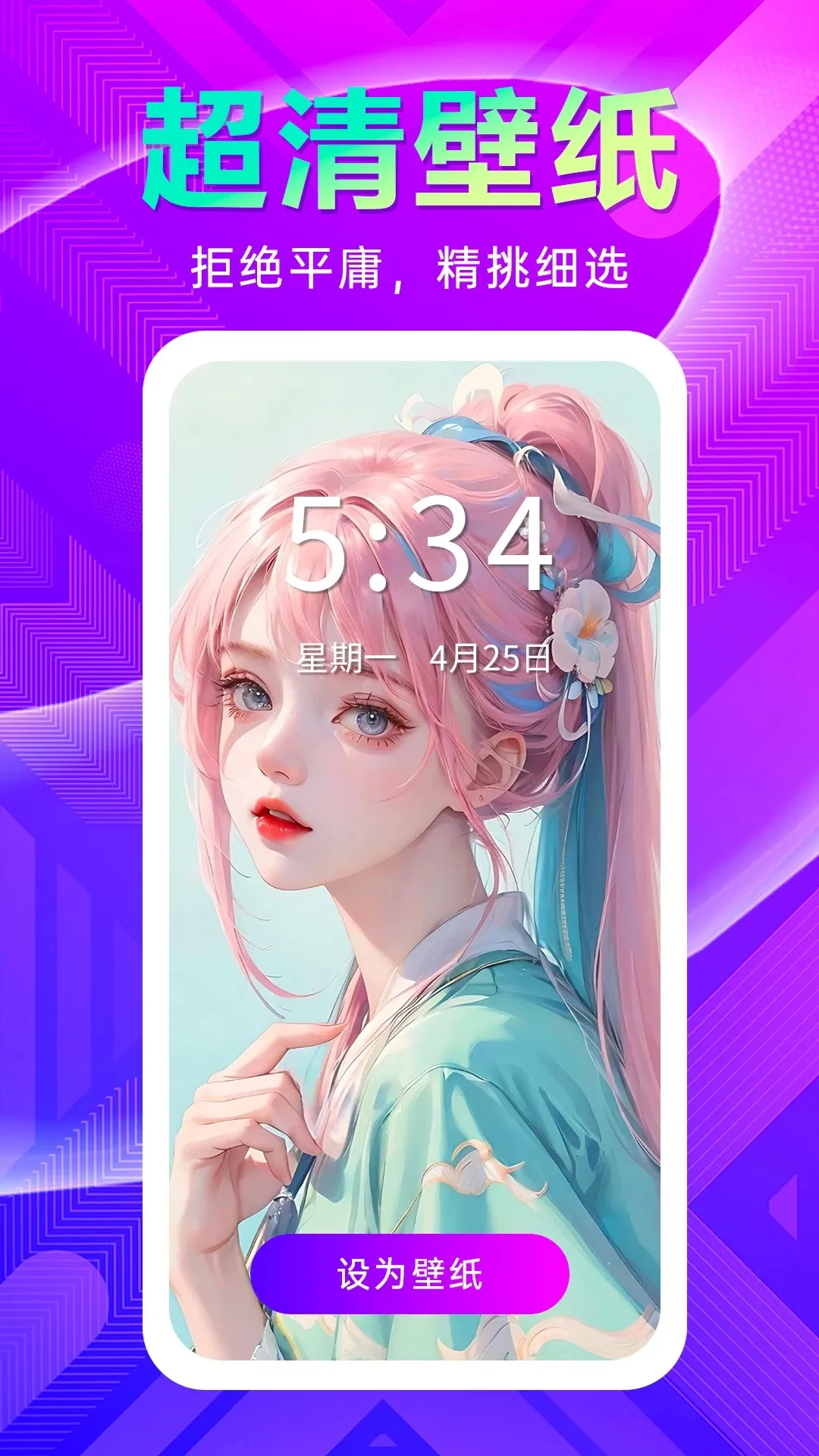 3. 一键设置:能轻松将喜爱的壁纸设为手机的锁屏、桌面等壁纸,使手机更具个性。