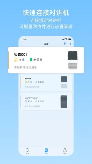 极蜂对讲2025最新版本是专为团队通信设计的应用,与对讲机配合使用。通过蓝牙快速连接,具备设置管理等功能,有独立通讯录,可创建群组实时沟通,多平台支持,还有语音回放等更多酷炫功能。