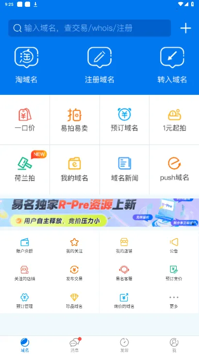 2. 功能免费且简单易用,满足注册新域名或购买现有优质域名需求,适合每位用户。