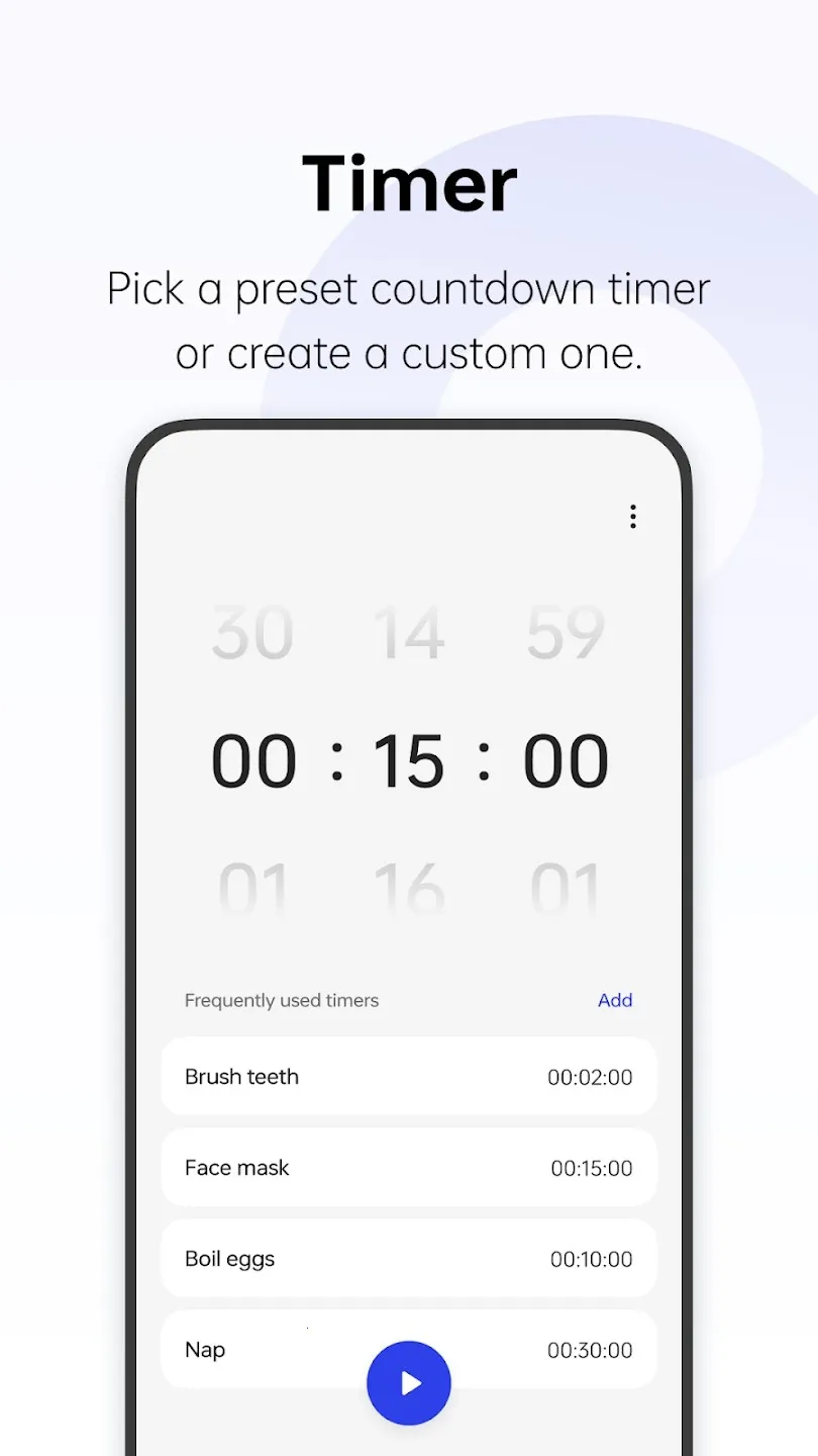 3. 秒表可添加标记精确把控时间,计时器能选倒计时模式或自定义时间,助力管理时间。