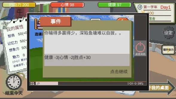 4. 随机事件和社交系统增强可玩性,高度还原大学校园成长体验。