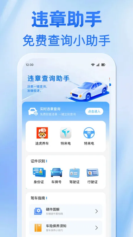 1. 这款违章罚款标准查 2025 官方正版,查询功能多样,有违章码查询和限行查询等。进入违章码查询板块,多种违章代码展示,一键输入就能查询信息,可快速知晓违章详情。