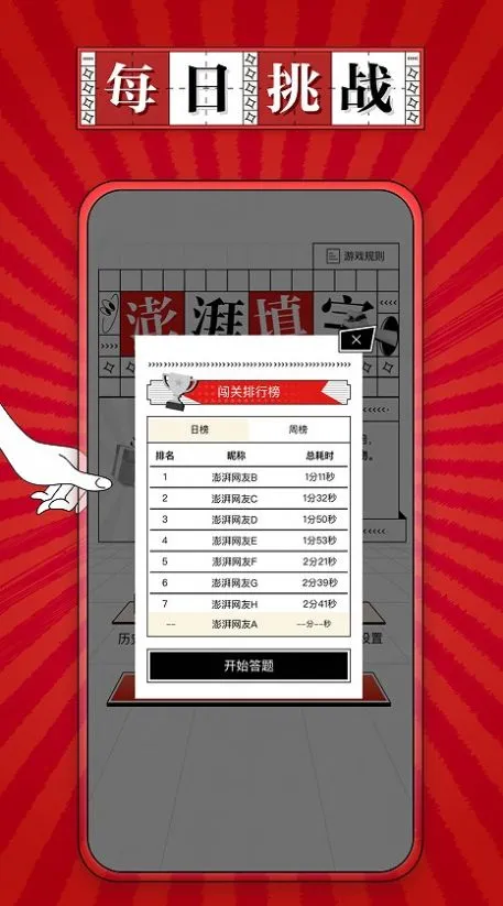 设有答题排行榜,每日周实时更新,能与广大填字爱好者一较高下,激发竞技乐趣。