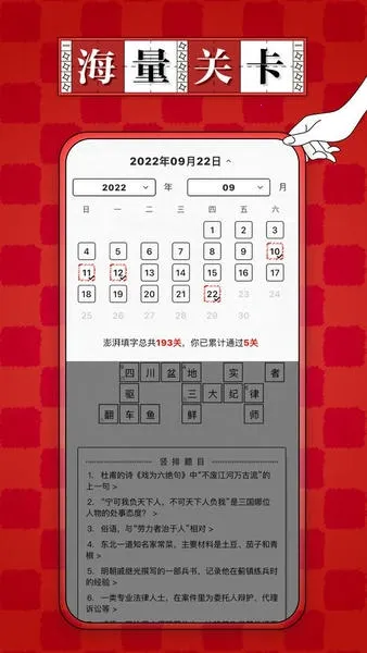 4. 每日0点更新一套题目,难度等级逐层递增,将学与练完美结合,是有趣的文字游戏。