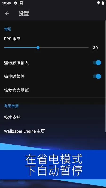 2. 所有壁纸免费使用且无广告,在设置中开启省电模式可减少耗电,定期更新能发现新颖动态壁纸。