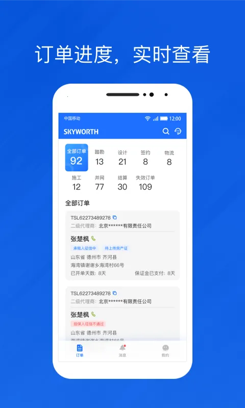 2. 订单进度清晰,所有订单进度均可统计,让您直观查询订单信息。