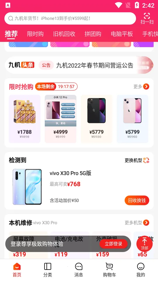 九机网app是专为手机数码产品打造的购物商城,有多种手机及品牌可选,实时更新机型。平台专业鉴定,提供优质商品与售后。支持以旧换新、一小时极速达等,线下门店超360家,覆盖多地,是知名通讯零售服务商。