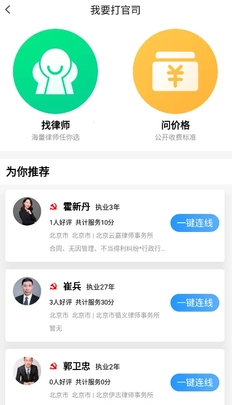 2. 支持案件托管、法律咨询等功能,使用简单,各种法律问题一键查询。