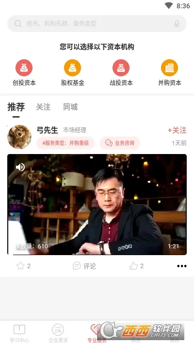 1. 助力用户引进股权资本,通过找资本模块接洽投资方,还能私信交友,简单高效对接适宜投资机构。