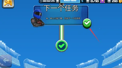 1、点击红框标注的绿色对勾按钮,获取门票继续任务。
