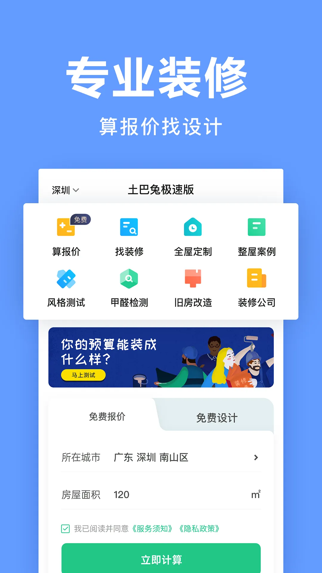 土巴兔极速版安卓手机版是装修服务软件,内存小、省流量、反应快。汇聚数万家正规装修公司与海量设计师,提供免费户型设计等服务,还有智能首页、购物清单等功能,保障装修质量,助你打造理想家。