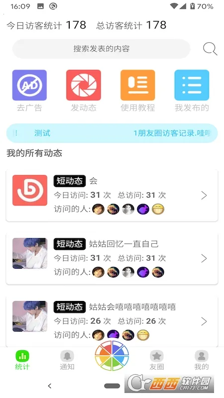 3. 能自动统计访问数据,无需手动整理,还可通过关键词快速搜索发布过的动态。