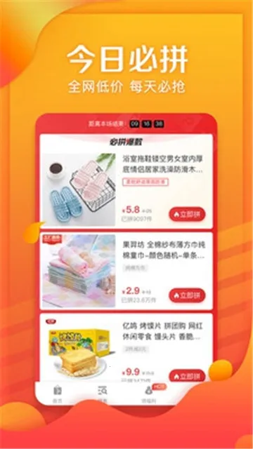 2. 优惠力度大,新人有好礼,今日必拼、9.9元拼等活动实惠多多,还有名品特卖、工厂直供。