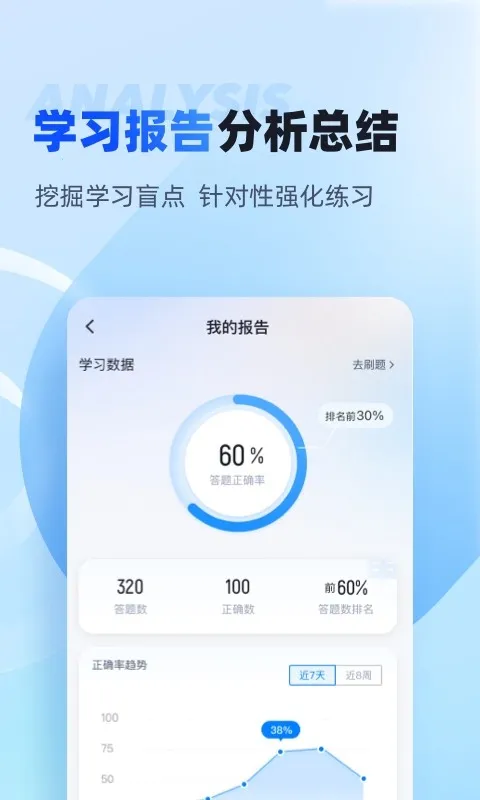 3. 能生成学习报告分析总结,挖掘学习盲点,进行针对性强化练习。