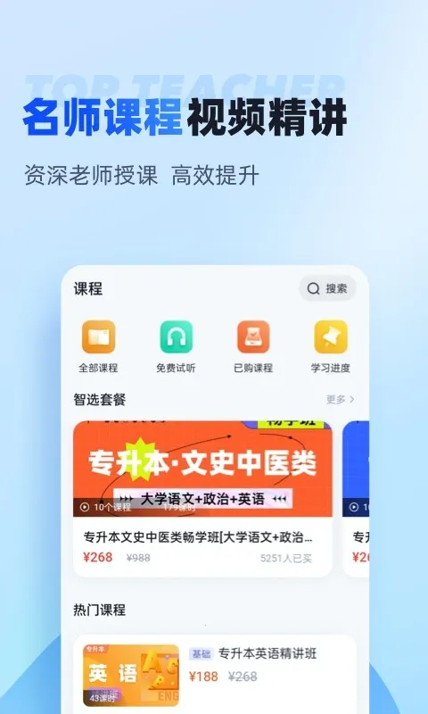 2. 有资深老师授课的名师课程视频精讲,可高效提升。