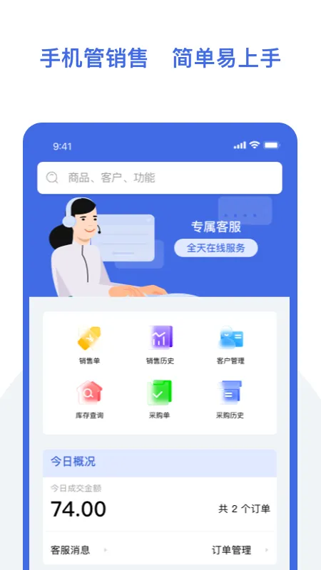 4. 能适配各类移动设备,运行流畅,随时随地可完成门店管理任务,还提供24小时线上服务。