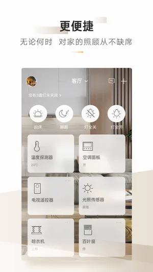 2. 它支持使用不同情景模式,比如下班时就能远程开启家中设备,到家即可享受便利。