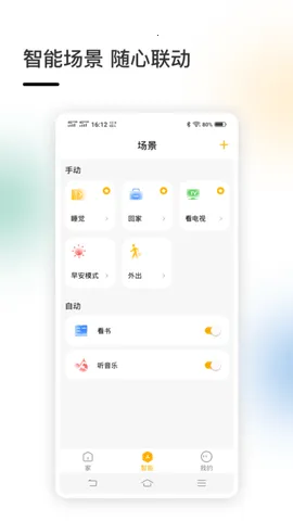 4. 可设置各种场景,规划时间让家居自动开启或关闭,出门也无需担心未关设备,支持远程控制,轻松享受便捷智慧生活。
