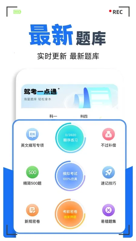 1、涵盖科目一科目四所有试题,实时更新,满足考生们的学习需求。