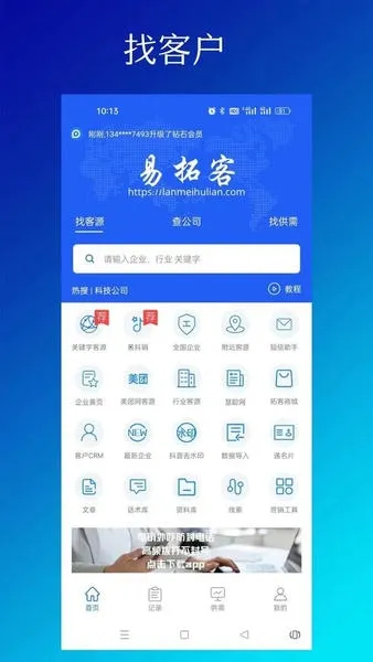 易拓客软件是一款超实用的客源寻找软件。它运用大数据分析和人工智能技术,整合网络上各行各业数据并分类,为用户提供优质客源服务。