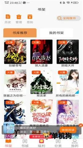 1. 支持书架及小说分类管理,可多屏滑动浏览并搜索书架书籍。