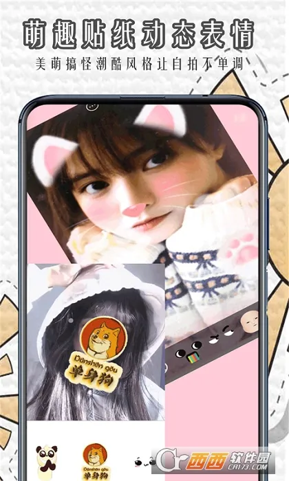 1、各种有趣动态贴纸,敲萌敲可爱。智能识别人脸,帮你一键识别脸部表情,长按拍照键还能录制短视频,并可一键分享至微信微博,与全球用户一起嗨!