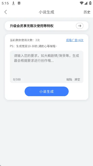小说生成器最新手机版是款创新便利的小说创作应用。它能满足用户多方面需求,提供海量素材、AI写小说等功能,操作简单,一键生成文案,涵盖写作神器、灵感、取名工具等大区,助用户轻松创作。