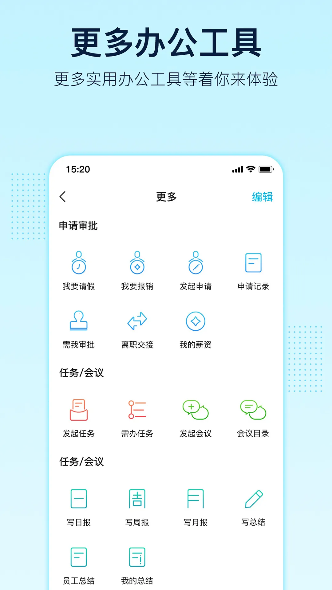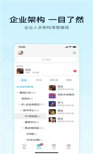 2. 软件功能丰富,如屏显专利性功能可突显重要信息,ID设置能备忘提醒,聊天窗口栏可直接搜索网页。还集成了多种办公功能,一站式解决企业管理沟通问题。
