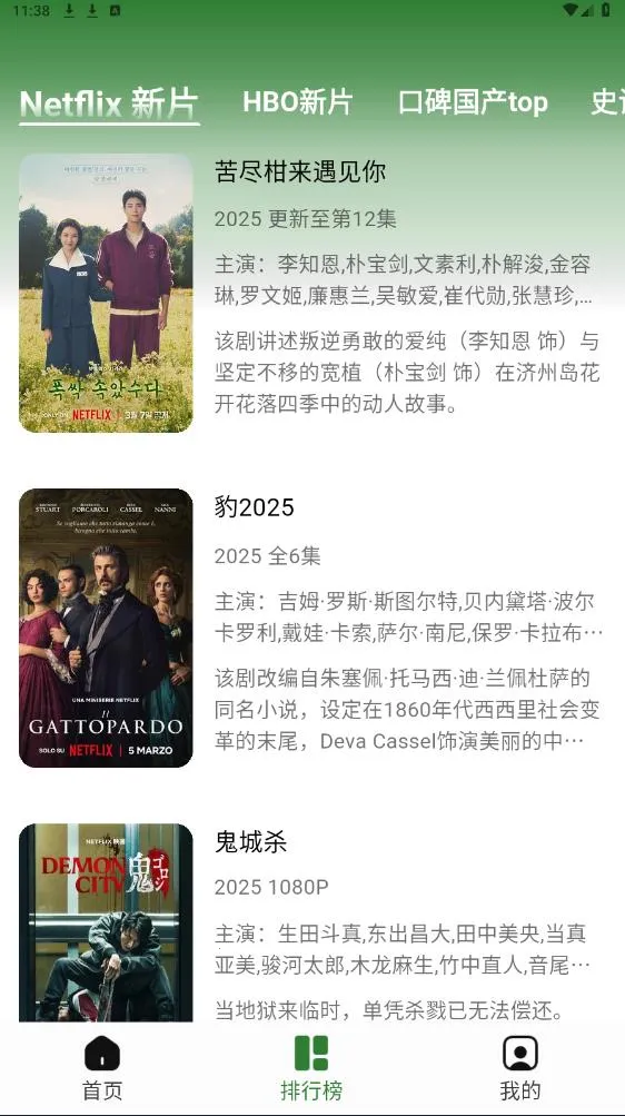2. 界面简洁,下方仅设首页、排行榜、我的三个板块,操作方便。