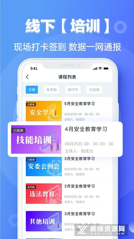 1. 现场培训时,通过扫描课程动态二维码进行人脸识别签到,能有效防止代签,还可实时查看签到和漏签名单,讲师也能发布课件供学员查看或下载。