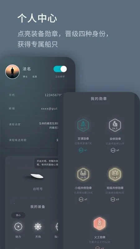 2. 提供勋章服务,通过点亮勋章晋级身份,获专属船只。