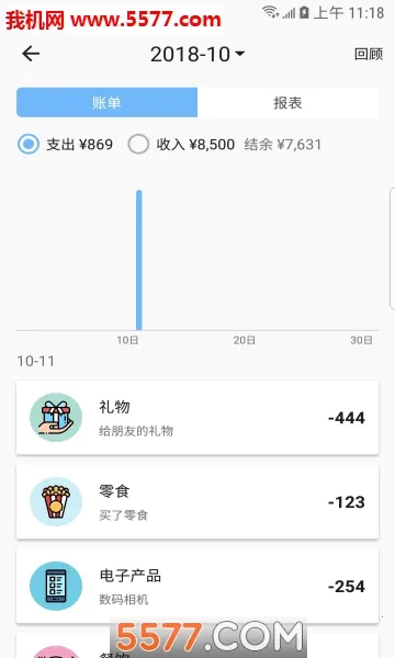 具备完整财务分析与报表显示,可生成月度趋势图、分类统计与余额走势,直观了解收支变化。