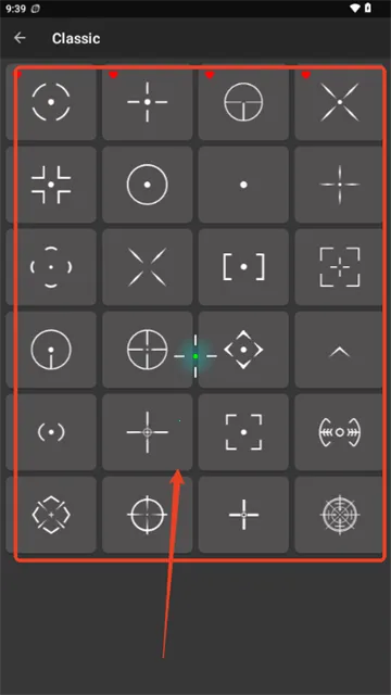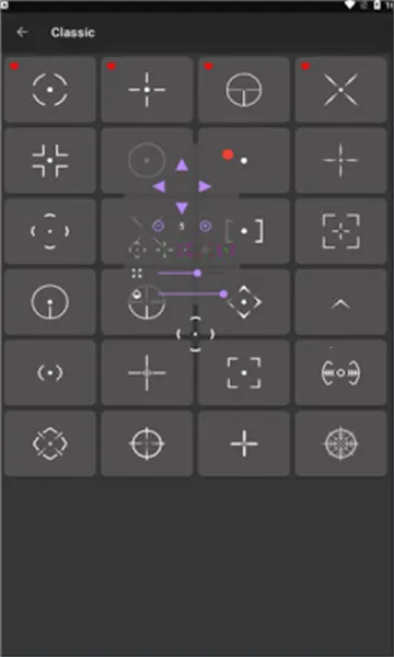 2. 拥有十几个准星供自由调节,可调整色彩、大小、样式等。