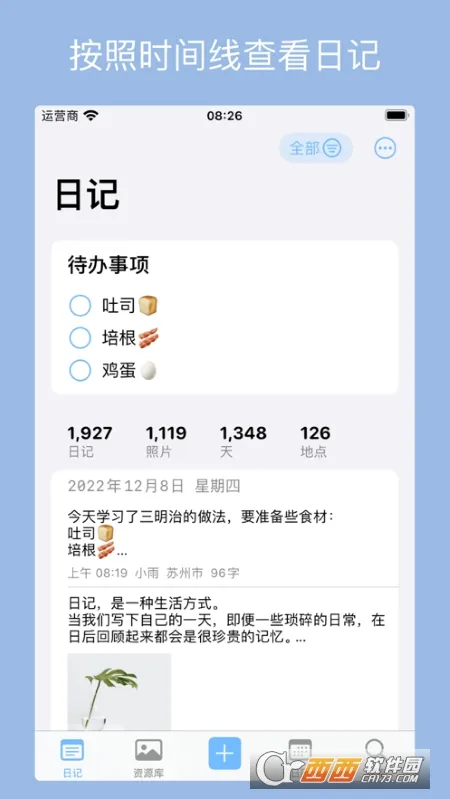 1. 支持文字、照片、视频、GIF 混合记录,还能插入时间、天气、位置,让日记更丰富。