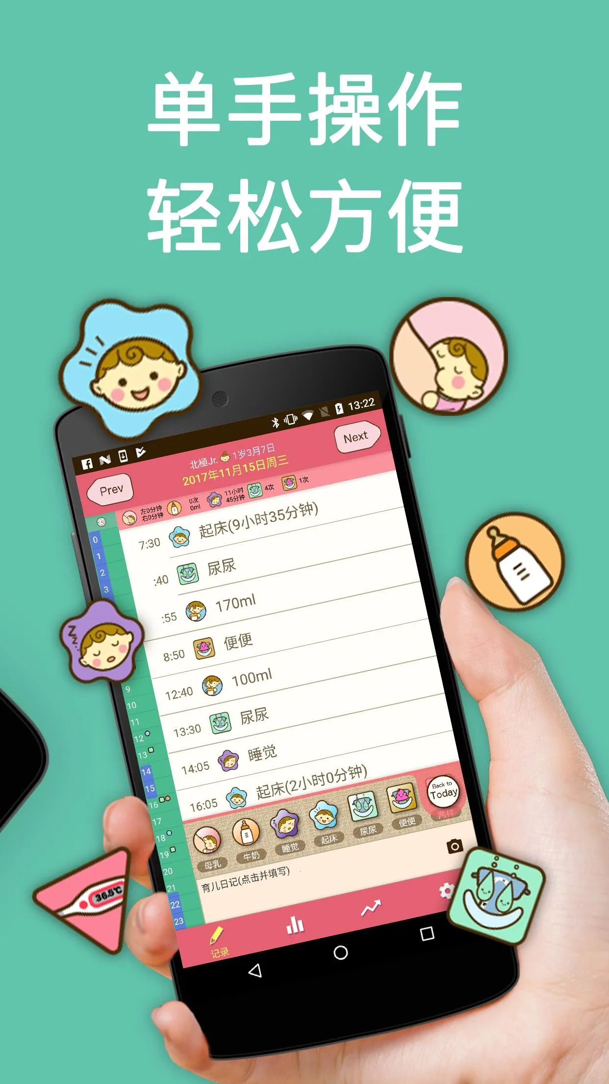2. 便捷操作单手可控,怀抱婴儿时也能轻松完成记录,功能分区明确,流程简洁,适合新手父母。