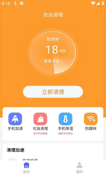 吉运清理是一款手机清理软件,功能强大。能清理内存垃圾,一键加速提运行速度,保护手机安全。操作简单,打开应用点击按钮即可扫描清理垃圾,免费且广泛受用户欢迎,让手机保持最佳状态。