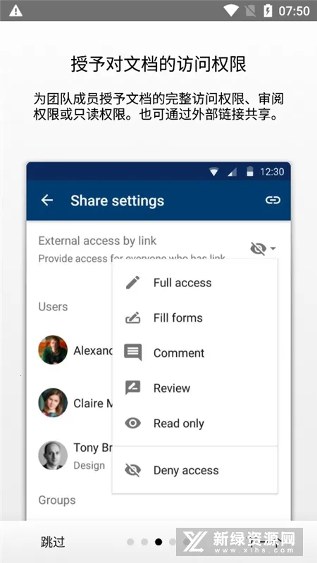 2. 可共享文件并授予不同访问权限,如只读、审查或完全访问,支持外部访问。