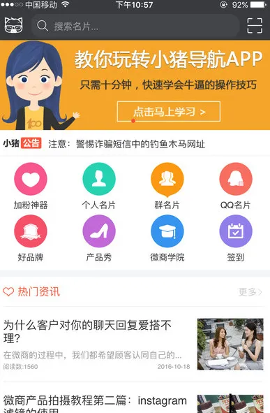 小猪导航 2026 官方最新版本是广州佳彬网络科技为微商打造的综合服务平台。整合资源提供推广服务,有个人名片、群名片等功能,还含优质品牌推荐、海量商品展示及专业微商课程,助微商拓展客源提升技能。