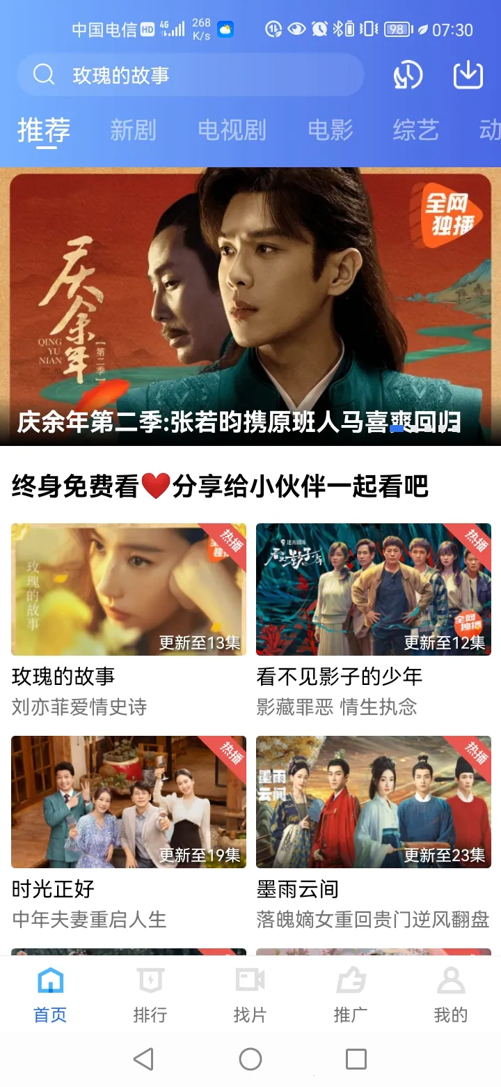 1. 软件内置更个性化影视剧推荐,按观影习惯在首页推感兴趣作品。