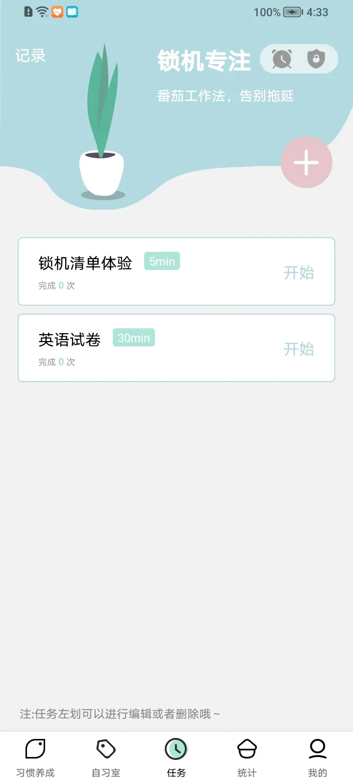4. 支持锁机自律,做任务时保持手机锁屏,提升专注力和效率,帮助用户在学习、工作或自我提升时更自律高效专注。