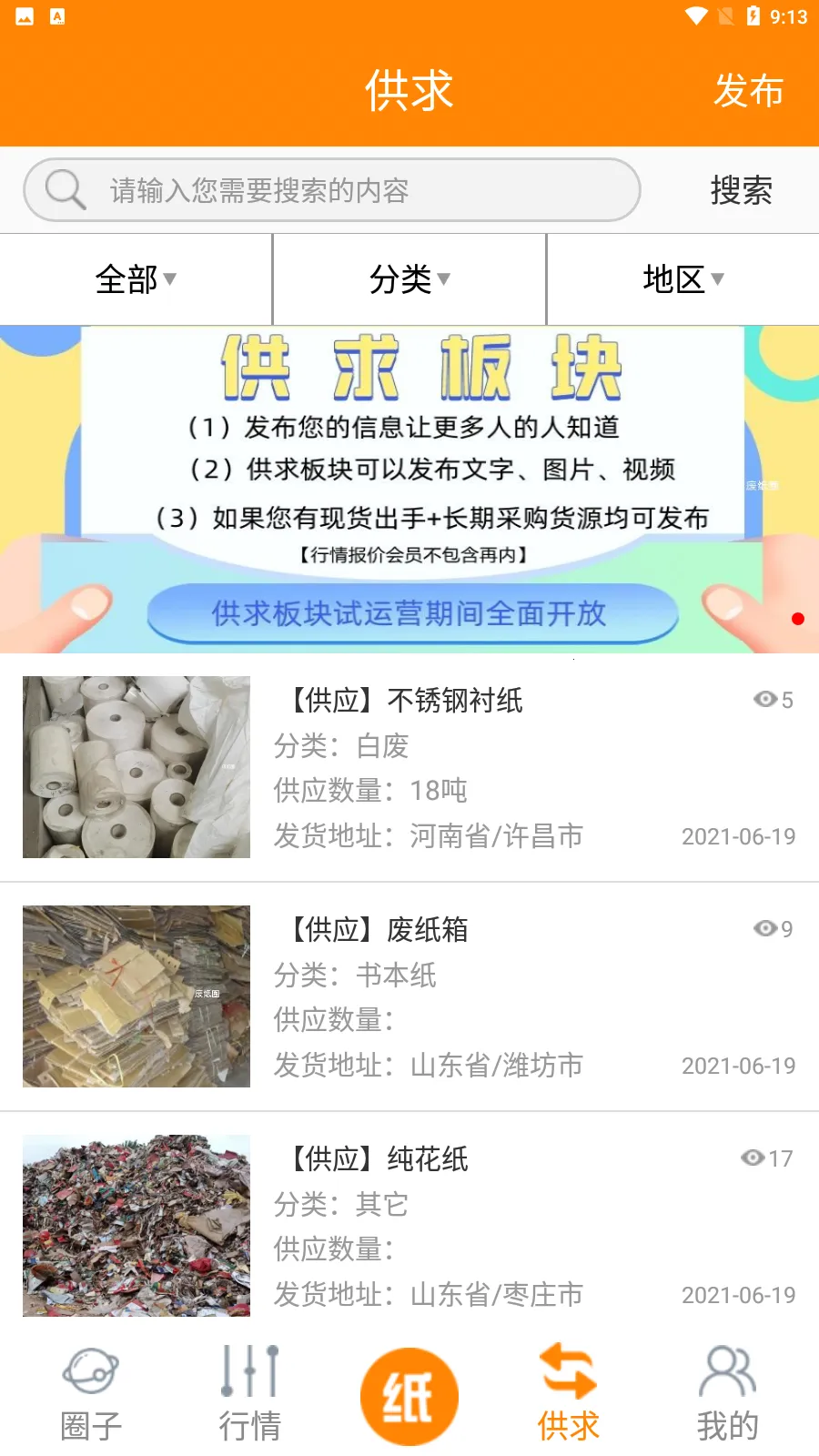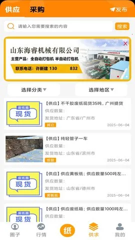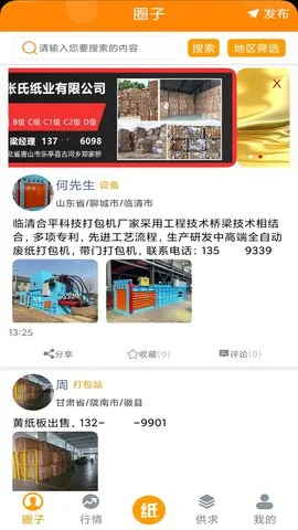 废纸圈2026官方最新版本是专注废纸行业的专属平台,有信息发布、供求资源、废纸黄页及圈子等服务版块。能实时查行情,提供回收预约等服务,通过大数据精准匹配供需,保障交易透明,助力废纸行业高效运作。