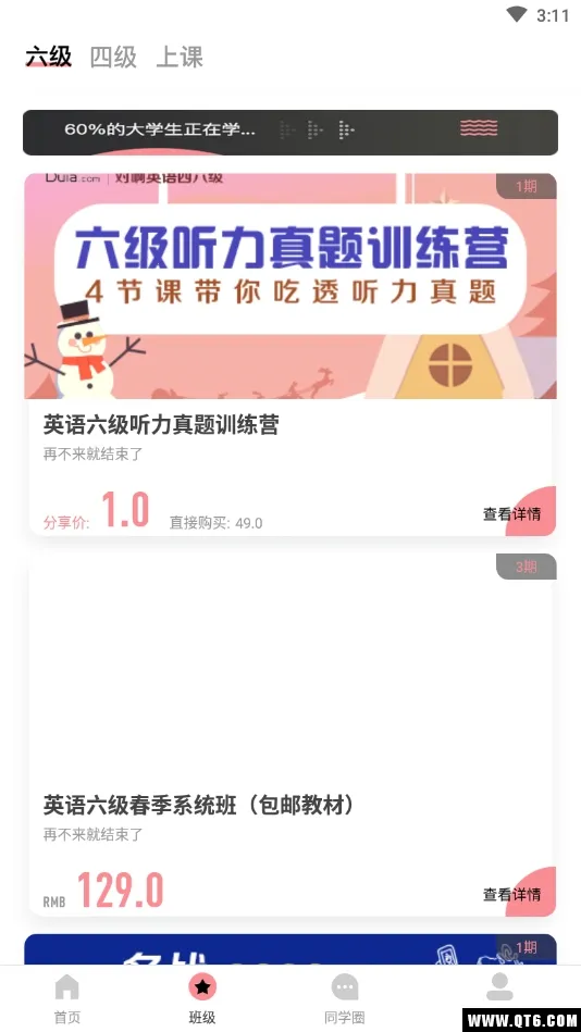 3. 上线免费精讲六级视频、免费直播公开课功能,9月份上线闯关背单词智能模块,还有过级分钱挣学费活动。
