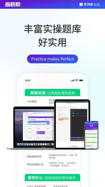 百职帮是成都超爱学习科技有限公司研发的编程软件,内置海量专业编程课程,含python等。支持碎片时间学习,有数据分析等特色功能,手机端可在线编译,课程免费,助零基础者入门,电脑手机进度同步。