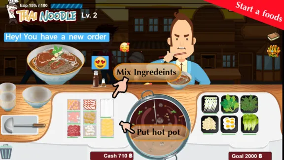 4. 能学习各种传统和创新的关东煮菜式,满足顾客不同需求,还可赚取丰厚盈利,购买道具升级厨房,挑战更多关卡。