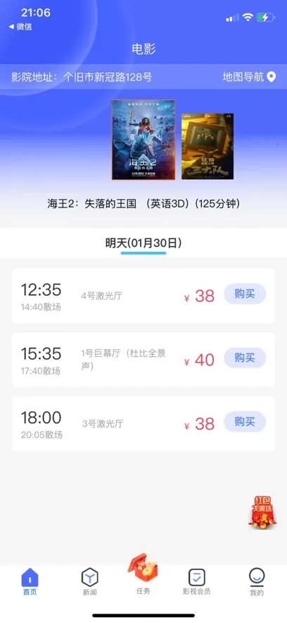 2. 可充值会员获得购票优惠服务,同时还能在此购买电影院的会员资格,享受电影票低价。