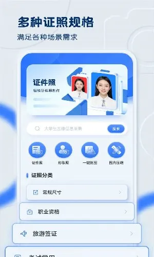 1. 多种证件照规格模板,覆盖日常、证件、考试、签证、职业资格等各类使用需求,满足多元场景。