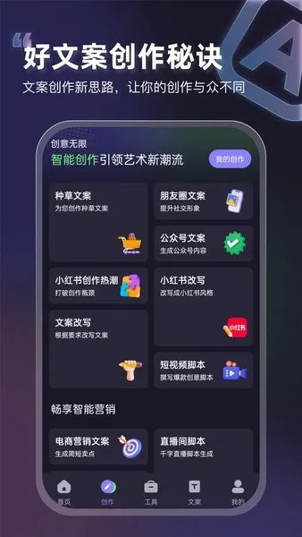 采用全新 AI 技术,自动生成短视频剧本、自媒体文案、朋友圈文案等多种文案,支持改写与润色,提升内容吸引力与专业性。