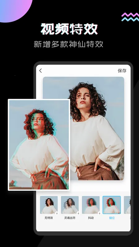 4. 具备MV特效、视频快慢放、特效处理、视频滤镜、文字贴纸等特色,特效酷炫,操作简单,能快速处理视频,随时随地可编辑。