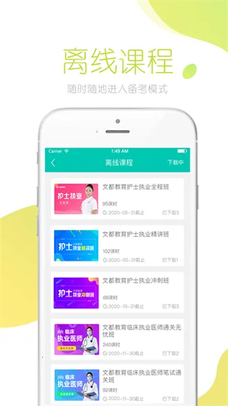 3. 用户可将想学习的课程下载到手机,随时都能学习。